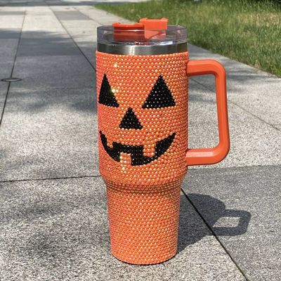 Design Halloween 40oz Rhinestone Tumbler with Pumpkin Pattern and Stainless Steel